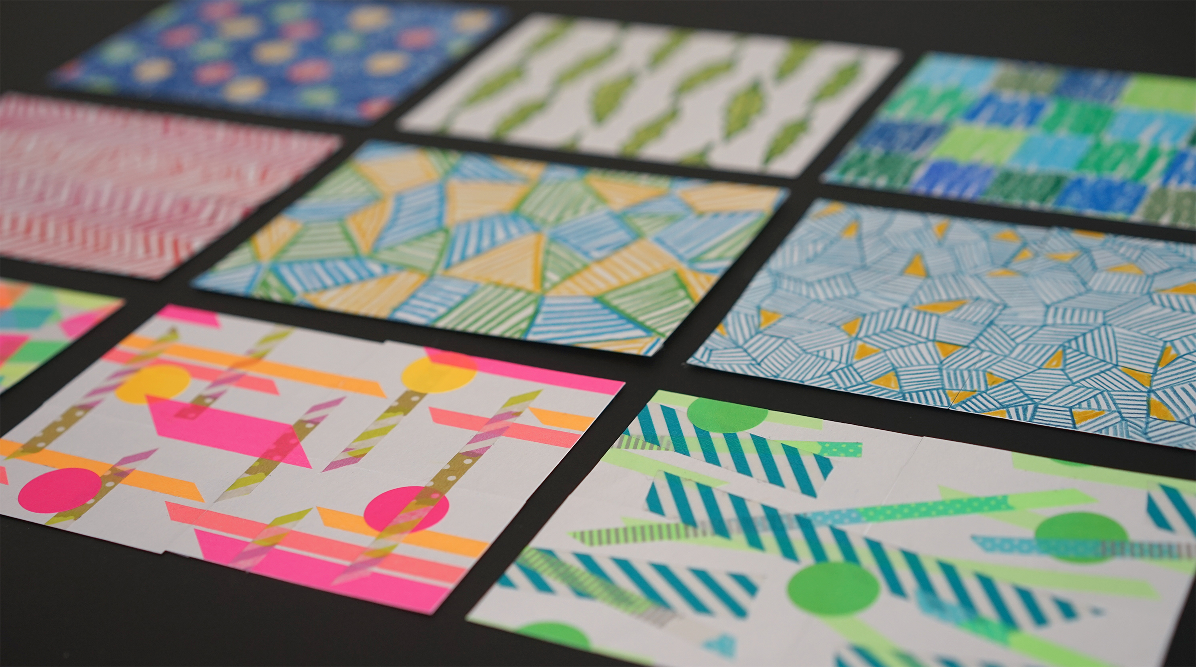 I make repeating geometric patterns to explore modularity, shapes and colours.
