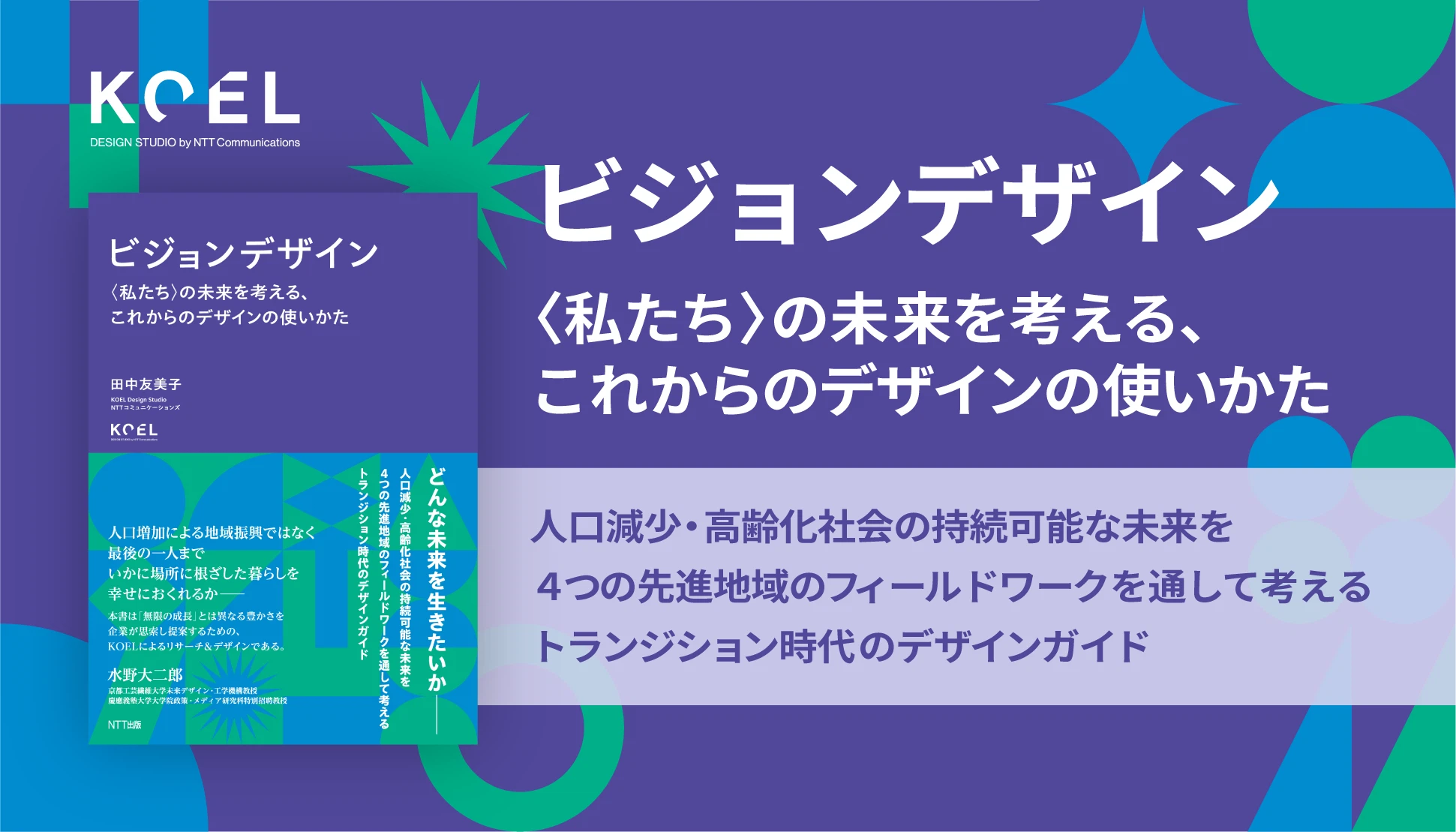 2025年4月に、NTT出版から、『ビジョンデザイン 〈私たち〉の未来を考える、これからのデザインの使いかた』という書籍を出版しました。 公共性とビジネスの両立をめざす「セミパブリック」領域で、新しい社会インフラの実現をめざすNTTドコモビジネス(旧・NTTコミュニケーションズ)のインハウスのデザイン組織・KOELデザインスタジオで2021年から2023年の3年間で実施した「ビジョンデザイン」のプロジェクトをまとめたものになっています。